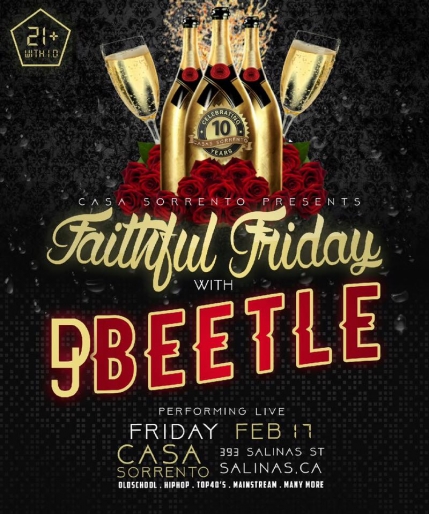 Dance the night away with live music from DJ Beetle. Playing everything from old school to latin dance, and much more. His choice of music is guarenteed to keep the party live!