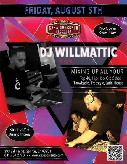 Bringing the party to Casa Sorrento with the best of the Top 40's, Hip Hop, Old School, Throwbacks, & Latin House!!! Dress to impress!!! 21+ NO COVER