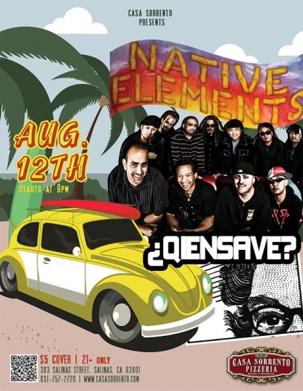 San Francisco powerhouse, Native Elements has been keeping the energetic, feel-good reggae tradition alive in the Bay Area for over 18 years. Comprised of 10 seasoned musicians with decades of experience in rock, metal, blues, jazz, r&b and hip hop, this eclectic and fearless crew meld their unique influences into a contemporary melodic horn-driven party. Fans are treated with improvisational peaks and valleys from blazing guitar to soulful saxophone solos. Having grown up together since elementary school (jamming in garage bands and skateboarding) in and around Daly City, South City and San Francisco the Native Elements bring a uniquely warm experience to the stage that is both entertaining and uplifting.