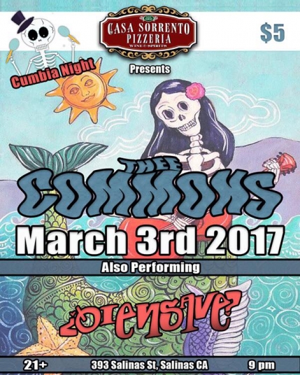 Since banding together in 2012, psychedelic cumbia-punk quartet Thee Commons have made waves in and around their hometown of East LA. Featuring los hermanos Pacheco and one of several lively session bassists and recently added saxophonist, these romp ‘n’ rollers have managed not only to marry two unlikely genres -- world’s apart -- in perfect pastiche harmony but also are planning to spread this East L.A. sound all throughout the USA this summer. Altogether, Thee Commons have played well over a hundred shows, gaining in the process hundreds more in fans -- those eager for something new to call their own. They have performed at several of Southern California’s prestigious venues, including The Echoplex of Echo Park, The Teragram Ballroom – both of which they’ve headlined -- The Regent Theatre of Downtown Los Angeles, and the Observatory of Santa Ana; have been hosted for a residency by pocho wine bar Eastside Luv of Boyle Heights -- which consisted of a weekly burlesque-dancer-entangled-affair dubbed the “Cumbia Psicodelica Cabaret”; and have opened up for such acts as Chicano Batman, Bomba Estereo, Bombino and even unofficially -- by way of an impromptu guerilla-style street show -- for The Pixies.